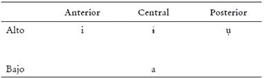 Por otro lado, es innegable que el habla amahuaca presenta una distinción entre vocales largas y vocales cortas, la cual es, ciertamente, uno de los rasgos más llamativos de la lengua. La pregunta es, nuevamente, si la cantidad vocálica constituye un rasgo fonológico o solo fonético. En nuestro análisis más reciente, las vocales largas tampoco forman parte del inventario fonológico del idioma. Si bien esta postura está abierta a replanteamientos, resulta muy claro que la presencia de vocales largas se condice con tres contextos: (i) las vocales de sílabas con tono bajo y sin acento métrico suelen mostrar un alargamiento compensatorio; (ii) la lengua presenta secuencias de vocales homorgánicas que fonéticamente se corresponden con vocales largas (Osborn 1948); y (iii) las palabras monosilábicas se realizan con una vocal extra larga como consecuencia de un requisito de palabra fonológica mínima. Dado que, hasta donde podemos entrever, las vocales largas pueden siempre explicarse a partir de alguno de estos contextos, en este trabajo no las incorporamos en el inventario fonológico de las vocales, tal como se aprecia en la Tabla 2.