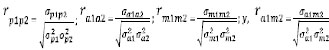 donde σp1p2, σa1a2 y σca1m2son las covarianzas fenotípica, genética aditiva directa, genética aditiva maternal, y entre los efectos genético directo y maternal, respectivamente; σ2p1 y σ2p2, σ2a1 y σ2a2, σ2m1 y σ2m2 son varianzas fenotípica, genética aditiva directa y maternal de las características 1 y 2.