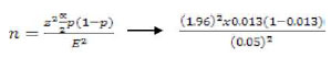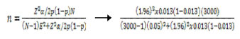 Se trabajó con dos tipos de poblaciones: finita (palomas mensajeras) y no finita (palomas de Castilla). Para el caso de la determinación de la población no finita (n=20) se utilizó la siguiente fórmula, donde se usó el 1.3% de prevalencia referencial, reportado por Cermeño et al. (2006) para H. capsulatum en palomas de Castilla: