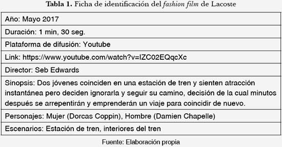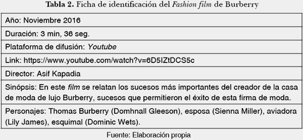 Este análisis será aplicado a 3 fashion films: Timeless Elegance de la marca Lacoste, The tail of Thomas Burberry de la marca Burberry y Reincarnation de la marca Chanel,