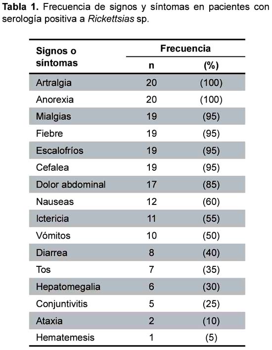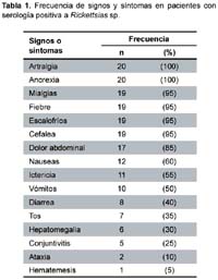 Se confeccionó una ficha epidemiológica, cuyos datos fueron llenados retrospectivamente, con lo cual se pudo determinar las características clínicas de los casos con serología positiva de Rickettsiosis.