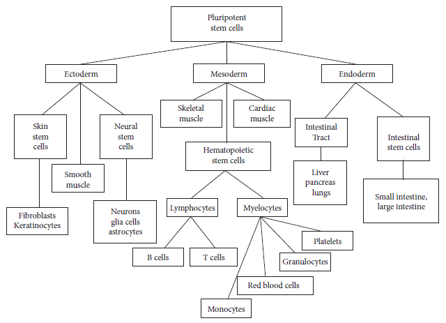 Figure 2 The three induced embryonic layers of pluripotent stem cells and their important differentiations.