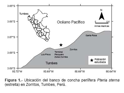 En Tumbes, las poblaciones más importantes de concha perlífera están asentadas sobre las plataformas de extracción de petróleo ubicadas en La Cruz, Zorritos y Punta Sal, a profundidades de 3 a 45 m (Robles & Méndez 1989).
