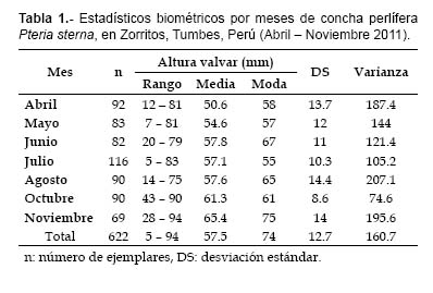 Biological characteristics of one Pteria sterna population (Bivalvia: Pteriidae) from Zorritos, Tumbes, Peru