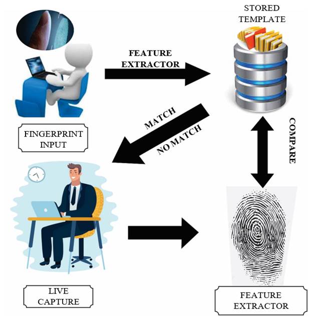 The process starts when the fingerprint is entered into a fingerprint recognition device with an optical fingerprint scanner. This device transforms the information into digits and captures the image of the entered fingerprint. Once digitized, the fingerprint is taken to the database (template) by means of mathematical algorithms according to its particular characteristic.