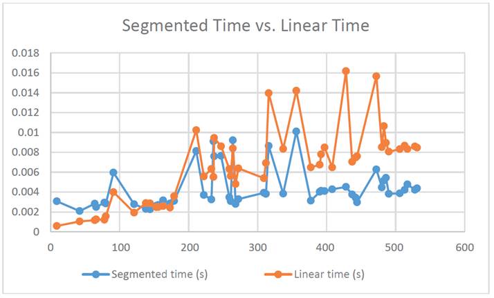 In conclusion, we can confirm that the segmented search algorithm has advantages over the classical linear algorithm, mainly due to the following two reasons: