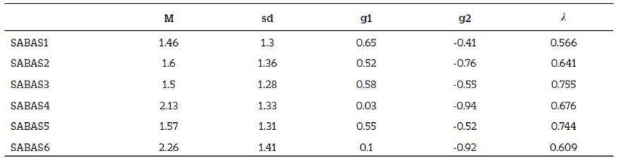 La Escala de Adicción basadas en aplicaciones para teléfonos inteligentes (SABAS) fue desarrollada por Csibi et al. (2018). A continuación, se presenta la estadística descriptiva de las variables del SABAS (Tabla 1).