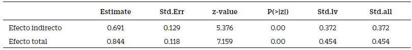 Tabla 4 Coeficiente beta, p-valor e índices de ajuste de los modelos de mediación planteados