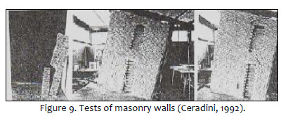 The work of Ceradini (1992), allowed to simulate distributed lateral forces depending on the mass on dry joint masonry on a real scale. The objective was to determine the mechanism of collapse and quantify the horizontal force that produces the fault. (Figure 9).