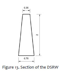 The maximum weight depends on the volume and specific weight of the DSRW to be tested and the filling to be used. The design weight is 30 tnf and it was obtained for a 2 m high pyramid (Figure 16), 4 m long and with a specific weight of 27.7 KN / m3; in addition, the weight due to the specific weight filling 16.4 KN / m3 was considered (Rivas Sánchez, 2019).
