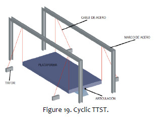A cyclic tilting table with a lifting system similar to that used in the works of Trujillo (2007) and Rincón (2008) is proposed, but tirfor rigs must be replaced by electric winches since the latter have a greater load capacity. Winches are mechanical devices that are driven by an electric motor.