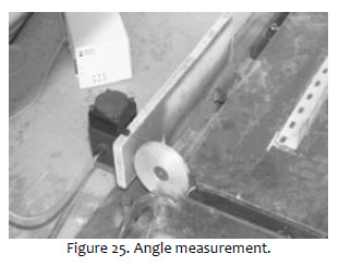 The instrumentation is the same as that suggested for the monotonic tilt table. Because the cyclic table will not be tilted using hydraulic pistons, it is necessary to have an instrument to measure the angle of inclination. It is proposed to use the same measurement system of Trujillo (2007), which is made up of a rotary potentiometer, an 8.88 cm aluminum disc and a 1 "diameter steel rod.