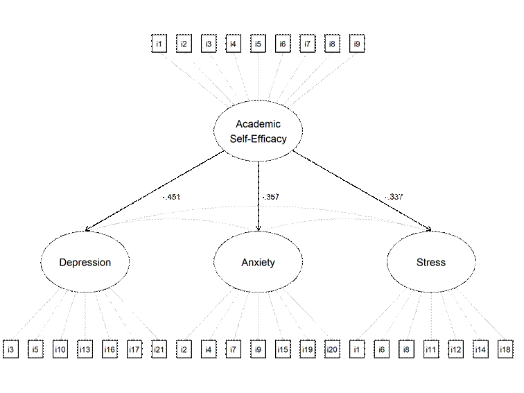 Figure 2 Proposed Structural Model for the Relationship Between Academic Self-Efficacy on Depression, Anxiety and Stress.