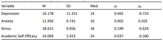 Note. M = Mean, SD = Standard Deviation, Med = Median, γ₁ = Skewness, γ₂ = Kurtosis.